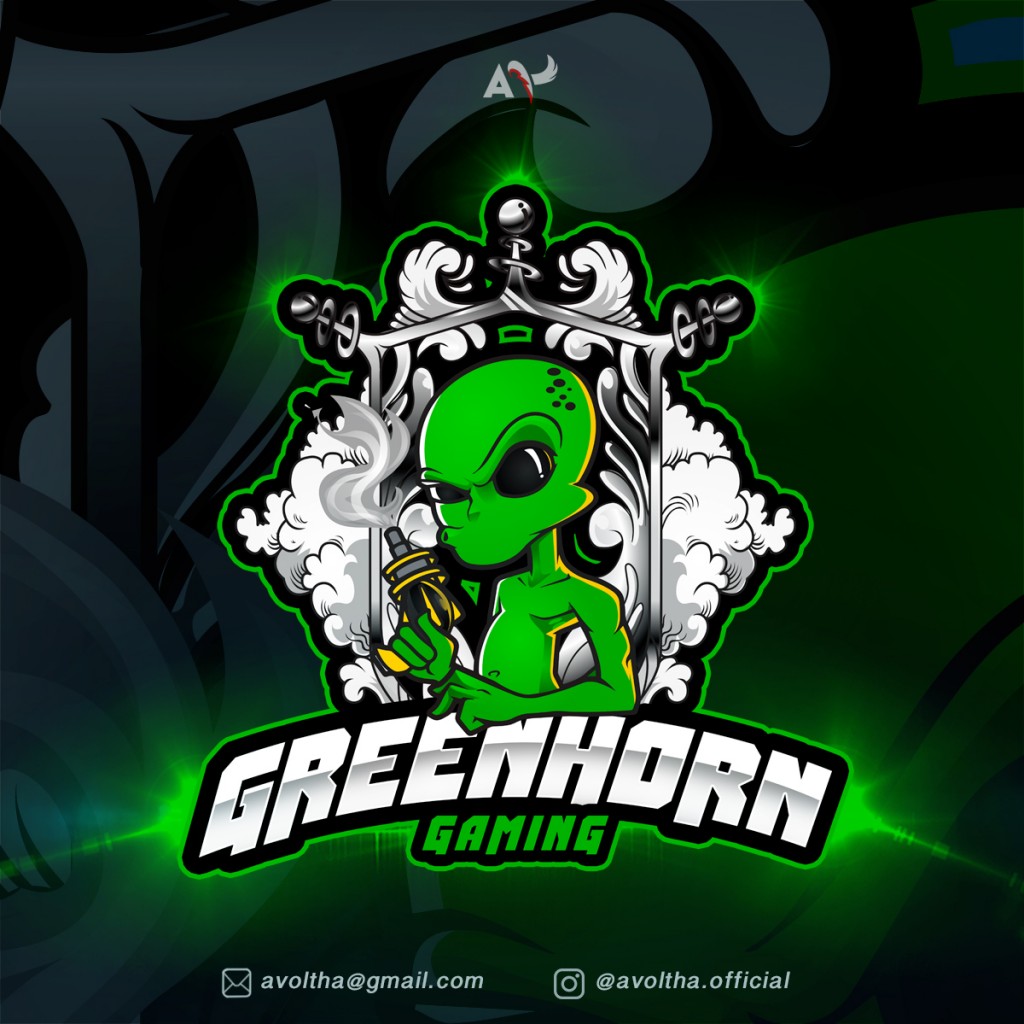 Greenhorn Gaming Personalized Cartoon Logo Illustration in full color. Get yours.