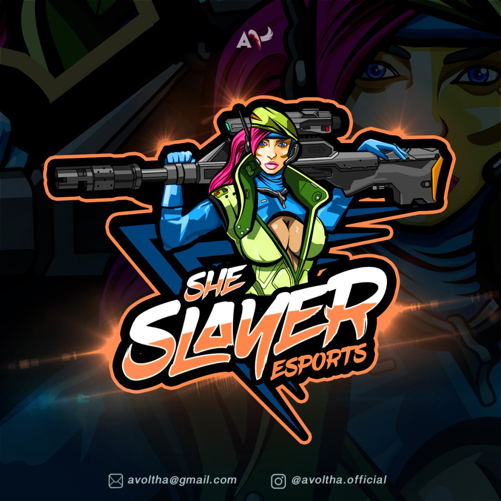 She Slayer Esports Team Personalized Cartoon Logo Illustration in full color. Get yours.