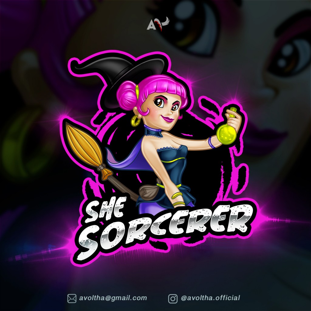 She Sorcerer Gaming Personalized Cartoon Logo Illustration. Get yours.