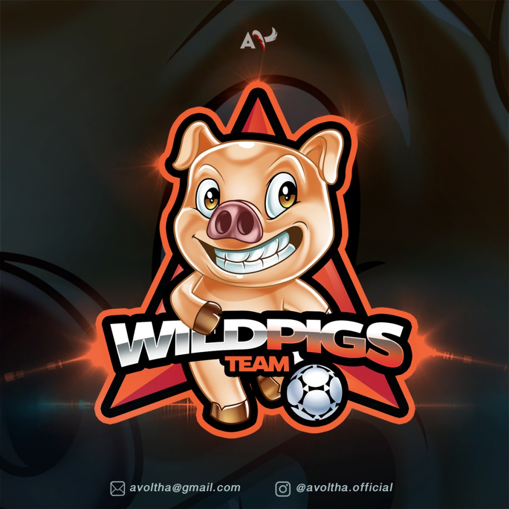 Wild Pigs Soccer Team Personalized Cartoon Logo Illustration in full color. Get yours.